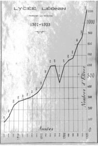 Με τη λήξη του Α’ Παγκοσμίου Πολέμου ο αριθμός των μαθητών φθάνει τους 700. Tην εποχή εκείνη το Λεόντειο περιλαμβάνει: Α) Ελληνικό τμήμα με Τετρατάξιο Δημοτικό, Τριτάξιο Σχολαρχείο, και Γυμνάσιο. Τα μαθήματα γίνονταν σύμφωνα με το αναλυτικό πρόγραμμα και τα σχολικά βιβλία του ΥΠΕΠΘ, με ιδιαίτερη μέριμνα για την εκμάθηση γαλλικών. Β) Γαλλικό τμήμα, στο οποίο οι σπουδές ήταν οργανωμένες σύμφωνα με το πρόγραμμα των Λυκείων και των κολεγίων της Γαλλίας. Στο τμήμα αυτό δινόταν ιδιαίτερο βάρος στη διδασκαλία των νέων και αρχαίων ελληνικών. Γ) Τετραετές εμπορικό τμήμα στο οποίο η διδασκαλία γινόταν εν μέρει στα γαλλικά, ενώ δινόταν ιδιαίτερη σημασία στη διδασκαλία της Ελληνικής και της Αγγλικής γλώσσας. Οι μαθητές καταβάλουν δίδακτρα.