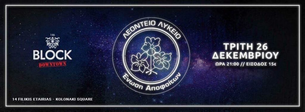 Η Ενωση Αποφοίτων Λεοντείου Λυκείου σας προσκαλεί στο ετήσιο Πάρτυ που διοργανώνει εδώ και πολλά χρόνια την περίοδο των Χριστουγέννων..: