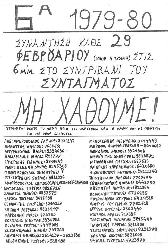 Τον αειθαλή φιλόλογο καθηγητή μας κ. Μιχάλη Γρυπάρη που μας παρέλαβε με ‘κοντά παντελόνια’ στην Α΄ Γυμνασίου το 1969 και μετά από 6 χρόνια μας άνοιξε την πόρτα στη ζωή αφού –μαζί και με άλλους καθηγητές- μας όπλισε με γνώσεις, αρχές και αξίες που διαμόρφωσαν τον χαρακτήρα μας…